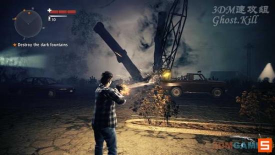 驱车来到一个剧院,下车后进入警卫室,屋里有个身缠黑暗的女性,为了让他恢复正常需要开灯。到隔壁房间拿到钥匙,然后补充下弹药,前往远处的发电室。