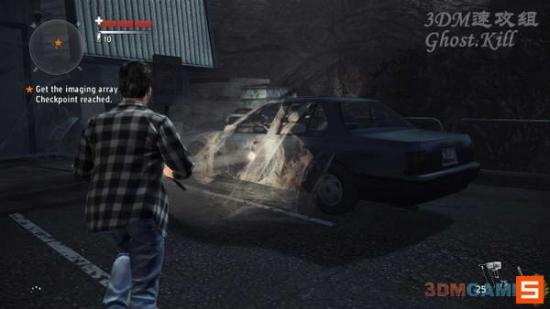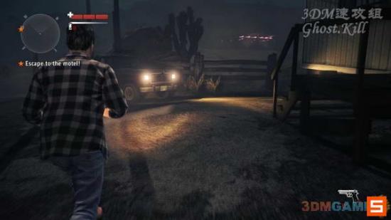 回到汽车旅馆后发现车库被敌人围攻了,杀光他们之后和女人对话,前往不远处的餐厅。餐厅门外一个球状物体被黑暗缠绕,用手电照射或者把它引到路灯下即可。进入餐厅在地上捡起钥匙,回到汽车旅馆,打开车库对面的房间,进去捡起地上的钥匙后过关。