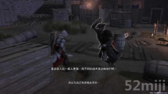 之后则是与海尔森的对决,因为康纳身受重伤;所以你必须借助附近的木桶之类的障碍物来有效杀伤他