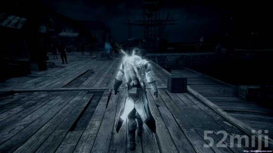 然后继续往右潜行,沿途可以杀死1个守卫避免被发现;躲在下图所示的木箱后头得知查尔斯的藏匿所。之后干掉船长逃离船坞结束本关卡