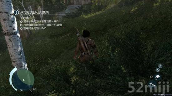 剩下的几个次要任务都比较容易完成。注意大型的猎物(如鹿),其警觉性还是很高的;一般比较适合从空中跳下进行猎杀