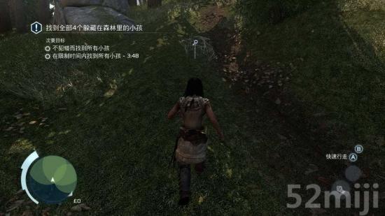 下面跟随你的几个童年伙伴进行捉迷藏的游戏。这个其实也很简单。分析线索之后;你的伙伴一个藏在北边的草丛之中;其余的两个藏在南边的两个草丛;而最后一个藏在南边的巨石之下。注意,附近没有线索的草堆不要去搜寻,否则那里会冒出动物伤害你从而无法完成次要任务