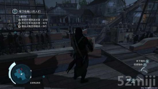 难度不是很大,开始之时可以先扔出10箱茶叶来完成次要任务。之后就可以在两个船之间慢慢杀死英军等待茶叶倾倒完毕