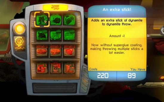 而商店的布局也很简单。上两层为你的两个攻击附加属性加成,而下两层为道具购买。