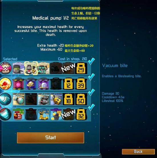 升级方向应以噬药和导弹为主要方向。中后期可以购买道具增加移动速度