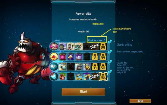 解析: CLUNK为高血量,但移动速度较慢的装甲机器。但是其自身的诸多技能,使其成为所有角色中最强大的人物。其最具杀伤效果的则是噬咬技能,配合上吸血属性加成的话。中后期完全可以以一敌三。而自爆的效果只有在后期,CLUNK的血量较高之时,才能体现出其规模杀伤的效果