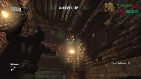 然后往回走,悬挂旁边往旁边移动。然后在沿着栏杆上面走到对面去!到了尽头,X进入扫描视觉,按3选择液体炸弹,把石板炸开然后下去!