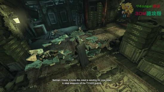 先用电磁枪清理掉地上的地雷,过去干掉他,上面会遇到女小丑被绑在那里!再次来到蝙蝠侠被小丑下毒的房间,先解决楼上的阻击手!