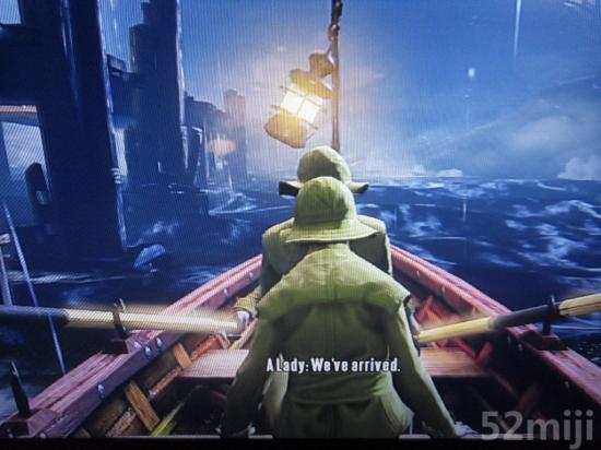 Booker Dewitt与一男一女坐着小船前往一座诡异的灯塔建筑物