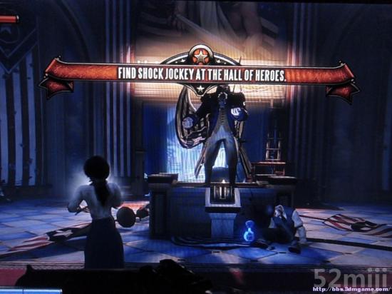 从傍边的海报得知获得“Shock Jockey”技能就能够把伊丽莎白和Booker带到“第一夫人飞船”上,他们就启程前往“英雄们的走廊”(路上得知Booker的夫人因难产而过世),后遇到一股敌人的袭击。