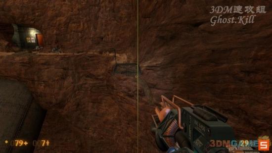杀光所有敌人,用火箭筒打下敌人的运输机,沿道路来到这个机炮这里。这玩意超落后的,按E使用,红外瞄准敌人坦克,打一发就要去旁边捡一颗炮弹过来装上。炸掉坦克后进入坦克出来的那个隧道。隧道里有个机枪阵地,使用机枪干掉下坡的外星人,然后走到隧道尽头的房间。房间有个通风管,进去前先扔颗手雷,里面超恶心的。