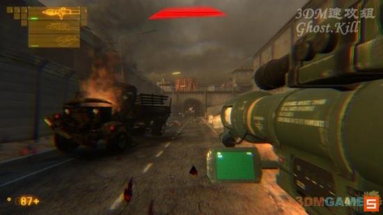杀光敌人到警卫室按下开关开启右边的大门,进入大门继续沿公路前进,路上有敌人装甲车,还是用火箭筒干掉,比坦克好打很多。公路尽头的房间玻璃破了,从窗户跳进去按下墙上的开关开启大门。