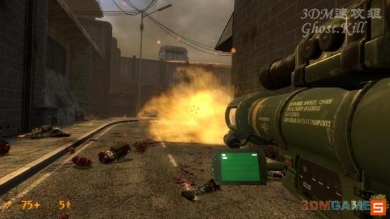 拿上火箭筒出来炸掉敌人直升机,可以开一炮接着跑回门里,等直升机攻击结束后再出去。火箭筒有两种瞄准模式,点右键切换,一种是导弹跟着准星走的制导模式,一种是走直线的普通模式,建议用制导,就是准星周围是红色的那个模式。图中山东左边的石块前的箱子里是火箭筒弹药,要节省着用,要打的不光这个直升机。为了节约也可以使用另一把4号武器,右键蓄力攻击。