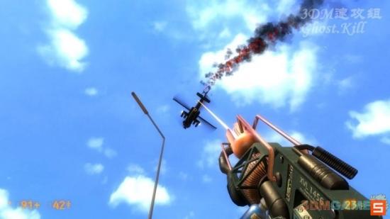 从隧道出来沿公路前进,路上敌人不少,全部杀光后来到敌人的基地,基地敌人也很多,仍然是全杀光了,然后搜一搜补给,继续沿路前进。路上会飞过来一架直升机,用这把枪把它打冒烟即可。