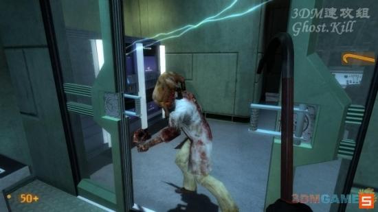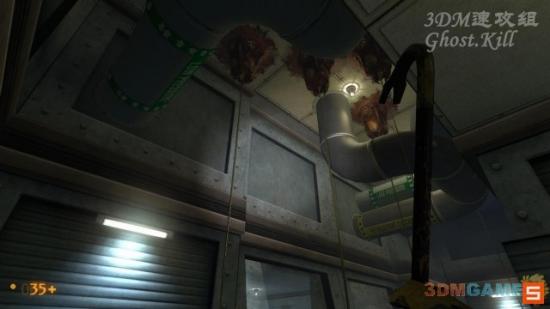 这个房间可以踩着这些箱子进入通风管道,管道里没有怪,到尽头处跳下去是一个警卫室,打开电闸后离开房间,坐货运电梯下楼。下楼的途中会不断地有猎头蟹从天而降,非常难对付,乱蹦乱跳的很难打,用枪太浪费子弹,最好用撬棍。