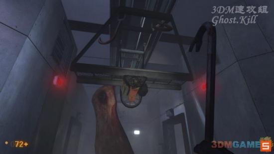 楼梯上又遇到两个人,跟他们一起杀到这个电梯门口,加速跳到对面的梯子上,爬到最高层,打烂最高层电梯的天窗,进入电梯里过关。