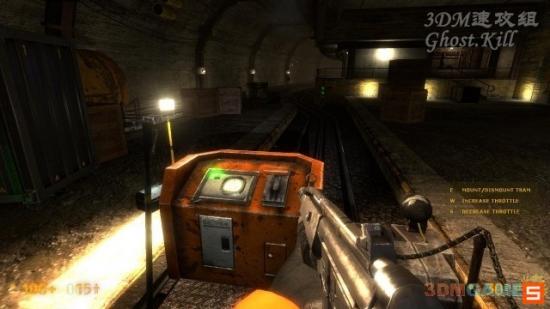 下楼后是一个隧道,可以直接步行穿过隧道,也可以坐图中这车,按住E然后按W可以前进,路上当然会不断的出现各种怪,撞死或者打死都可以。隧道尽头处是个满是绿色液体的池子,一看就知道碰了会掉血,从右边可以绕过去。