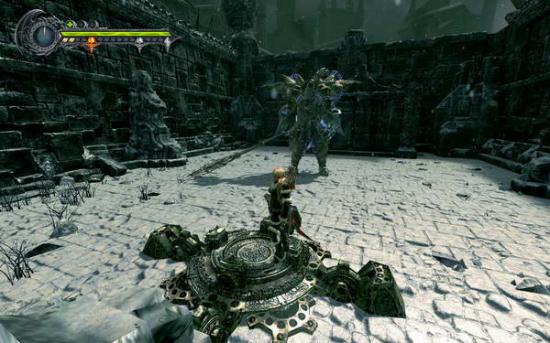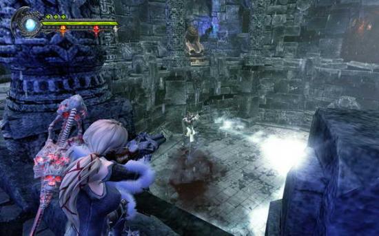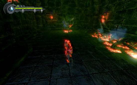 4.遇见第一个小BOSS,是第二章的火焰法师,用枪是无法造成伤害,只要近身战斗他会释放大范围击退技能,打几下就退到边缘,掌握时间间隙,不断进退,别被击飞到平台下摔死,还是很容易的。