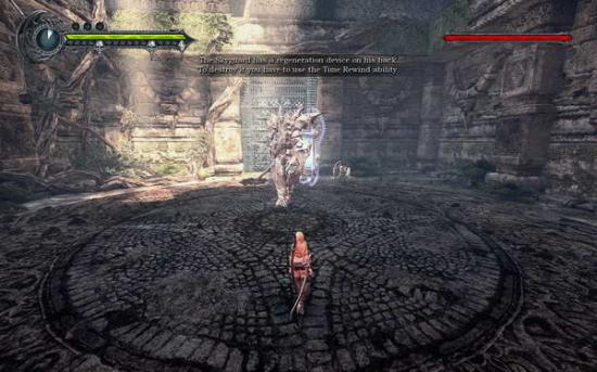 1.第四章对操作要求相对较高,出现了一个必须要反复使用时光回转才能打死的小Boss(后面其实经常遇到,所以要好好练习这个打法),用冲刺躲避BOSS冲刺。差不多打了一半血会出现QTE,会飞到BOSS头上狂按鼠标左键,然后他血又回满了(打了几次很郁闷)。正确的方法是用时光回转,倒转到之前出现QTE,让第二个分身也上去QTE,不熟练的话可能需要第三个分身,多用时光回转就能找到诀窍。