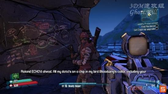 杀死BOSS拿到他脖子上的物品,返回庇护所找Claptrap,把东西交给他。去总部与Roland交谈完成章节。