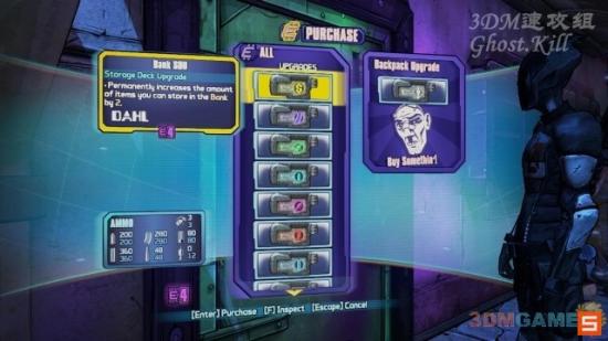 这就是刚才得到的eridium的用途,可以看到有很多升级部件可以购买,针对不同的武器,目前只能买一件。