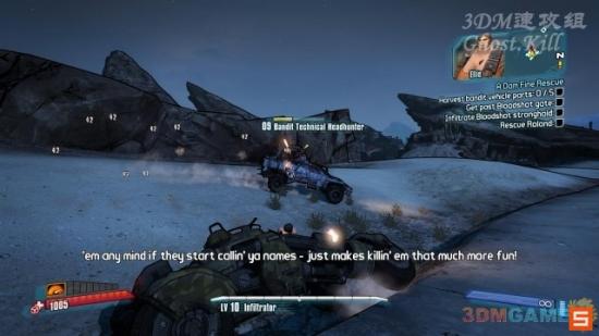 1.找辆载具2.在敌人门前鸣笛3.与Ellie交谈4.收集五个载具的零件5.BOSS战6.进入Bloodshot Stronghold7.试图营救Roland8.找到W4R-D3N9.成功营救Roland