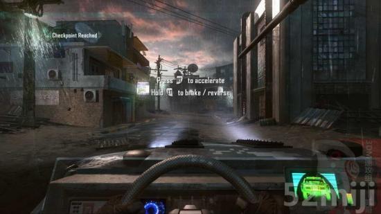 8.上车,切换至直升机视角,RT机关枪,LT火箭弹。红色LOCK是已被锁定的目标,瞄准击杀。直升机坠毁,操作回吉普车视角,遇见中国军队。过关。