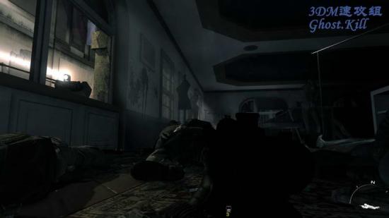 继续跟着肥皂,遇到敌人的大部队后进入这个房间,在地上趴着前进,肥皂让停就停,让走就走,有点类似COD4的狙击关。