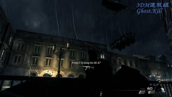 楼顶上有狙击手,干掉他们,虽然指令是这样,但是刚瞄过去他们就被普莱斯干掉了。接下来开始和广场上的步兵打吧, 直升机和吊着的装甲车不用操心,自然有人帮着搞定。