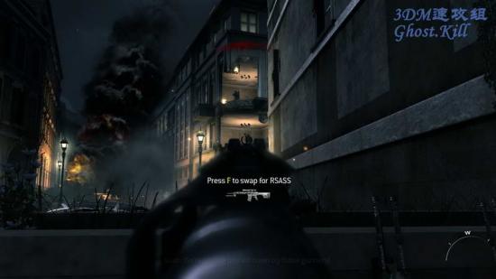 向前推,捡起地上的RPG炸掉敌人装甲车,然后跟着肥皂进入左侧的建筑里。建筑里有很多民兵,算是友军, 穿过一个个房间来到室外继续和敌人打。