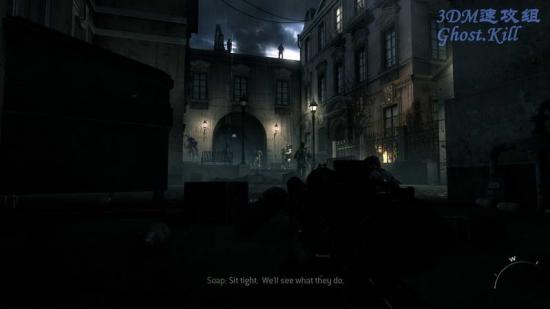 跟着肥皂来到室外,这里趴下,等指令先干掉楼顶上的狙击手,按理说是需要一人干掉一个的, 不过完全可以自己一个人把他们杀光,楼下的敌人也一样解决。