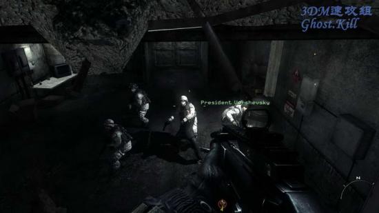 这次和三角洲部队合作前往救援俄总统和他女儿。坐电梯进入敌人基地,电梯门开后干掉背对自己的敌人, 其他敌人赶来用RPG把电梯炸到了最下层,按N使用夜视仪,从电梯出来杀光敌人。