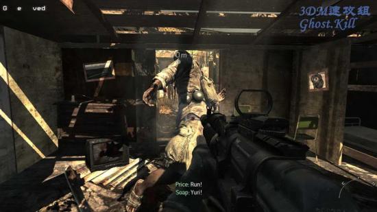 快到目标工厂的时候和普莱斯 肥皂分头行动,爬到房顶干掉狙击手,掩护他们俩进入工厂里, 不过马卡洛夫已经不在了。这时候大量敌人向他们涌去,全部狙死,别忘了狗狗。