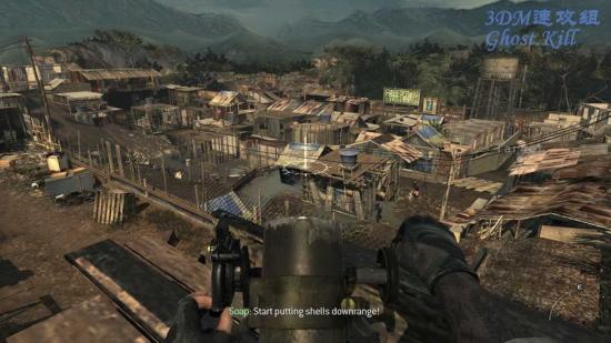 杀光敌人后换成AK过去和他们汇合,肃清这个村子。爬梯子来到另一边的路边,把干掉卡车上的机枪手, 然后过去使用机枪把周围敌人扫死,优先攻击敌人载具,这不需我多说了。
