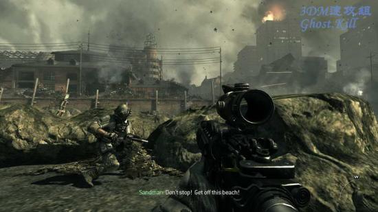 坐直升机在海滩登陆,跟着队友队友一边找掩体一边攻占滩头,坦克会紧随其后。上到街道上,从右路开始肃清敌军, 遇到敌人坦克时候先干掉机枪手,等友军坦克干掉敌人坦克就可以了。虽然自己也带着火箭筒,不过只有一发,用处不大。