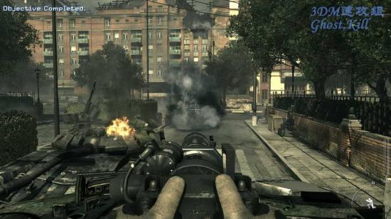 杀到比较靠内的街道在坦克旁边集合,远处狙击手干掉了坦克上的机枪手,上去代替他使用机枪。