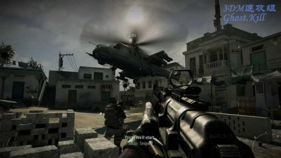 坐车去找可能会知道马卡洛夫下落的家伙那里,直接从正门冲进去,空中有尼克莱的直升机掩护, 按4可以使用直升机上的机炮,威力极强,不会过热,热成像视觉,敌人有红框标记。