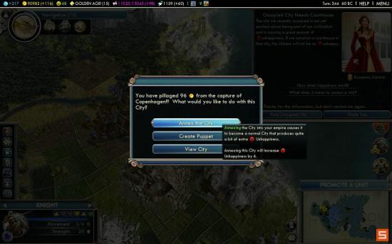 对于城市的夺取,这里建议所有的夺取城市以保持吞并(虽然可能降低快乐)。由于本作城市防御的提升,这就使得每个城市无形之中就是一个强大的防御壁垒