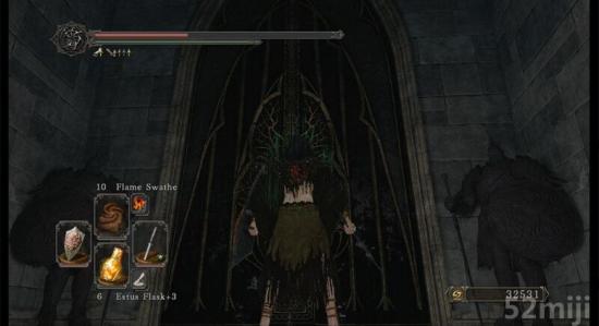 BOSS近身镰刀直接秒杀,周围4个诅咒塔无限释放诅咒,这里建议自杀一次,可以在回去召唤2个满血NPC。
