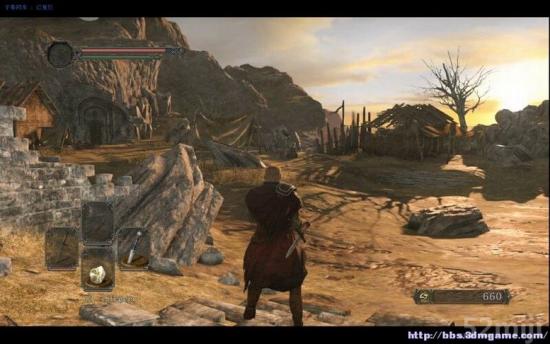 通过一些简单练习即可通过这张地图来到小镇上。这里先点燃篝火在去远处海边找到防火女,她会给你元素瓶以及开启升级功能,不要去右上角,里面有一群可怕的猪会咬死你,铁匠暂被所在了门外,需要钥匙才能让铁匠铺开张。