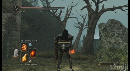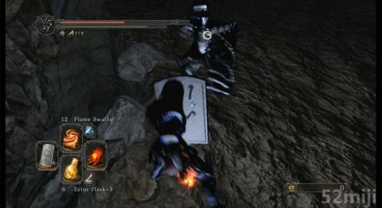 敌人配置:哈维尔,里卡尔,树精,盗贼。这个暗穴开始脚下就是坑一定要跳过去。用棍子R2屈死哈维尔,记得别引到旁边山洞里,不然里卡尔和他夹击你必死。最后那个导则渣渣。