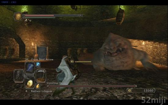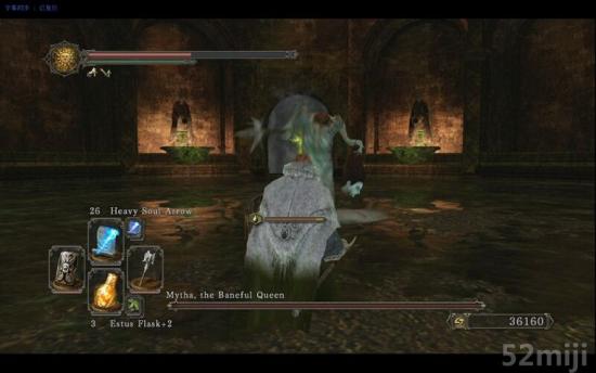 后面有大量魔法怪物,不过射程很低,可以用弓箭射死,BOSS门口有毒液池子而且有2长枪卫兵,这里可以从上方绕路进去,不过代价要面对一个会补2次血的暗灵以及3个魔法师。