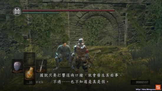 之后同一旁的NPC对话,可以得知第一个主线敲响苏醒之钟的位置。