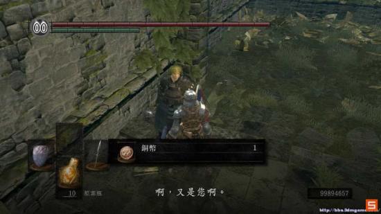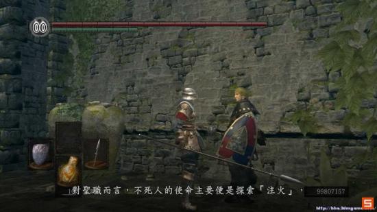 修道院废墟右边的NPC对话多次可以开启他的商人菜单,得到硬币 1并且可以与神签订契约。签订之后,可以在他这里购买一些法术和回城装备(返回之骨)
