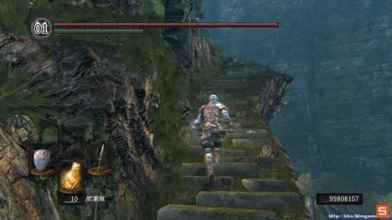 之后从上平台跌落,同开始遇到的大恶魔对决。由于你有加血的道具可使用,而且装备也有了一些加成,这个BOSS不是太难对付,多按SPACE注意翻滚即可。杀死BOSS打开后面的大门,来到悬崖尽头开始剧情。主角被大鸟抓到洛林特祭祀场