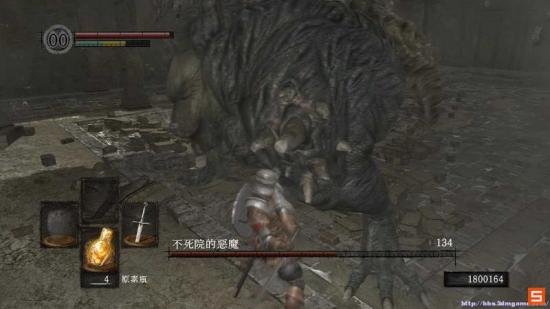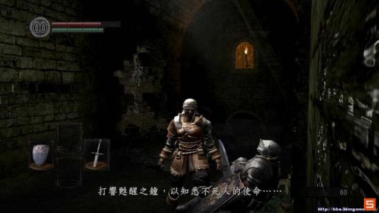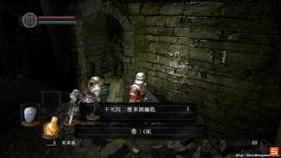 之后来到不死院二层,沿着东部的楼梯向上会突然下落一个巨铁球,砸开后面的墙壁;进入同里面的骑士对话,得到可回复血量的原型瓶和二层铁门钥匙