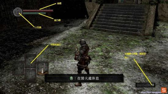 来到祭祀场,先使用杀死BOSS得到的人性,之后点燃篝火恢复人类面貌。篝火是你在每个区域的自动复活点,如果你被怪物杀死将会自动再次复活并且可在死亡的地点激活拿回原来的灵魂数