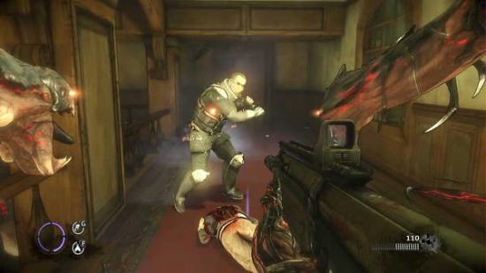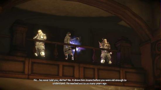 大厅中的混战,其实只要躲到楼底下利用柱子作掩护慢慢清怪即可。
