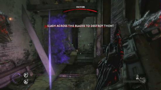 追boss的时候留意他放的刀刃是可以用触手直角方向打散的。