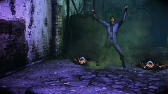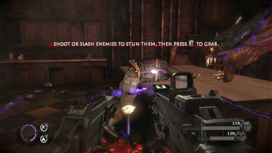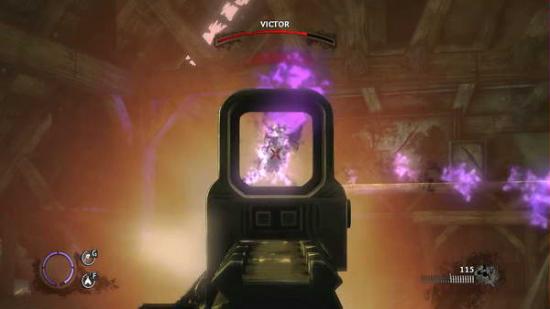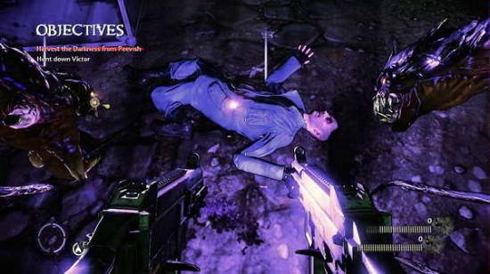 操作人物变回主角,这个时候黑暗力量被吸乾只能用枪,小心管理血量。
